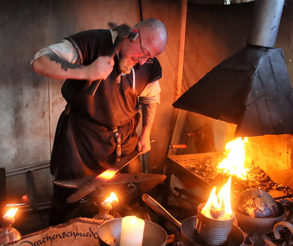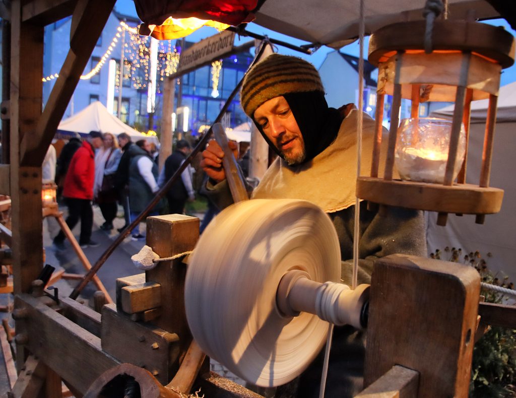 Der mittelalterliche Marktteil begeistert mit Gauklern, Spielleuten und Handwerksvorführungen wie Schmieden, Drechseln oder Filzen. Künstler wie das tschechische Ensemble „Chudadlo“ und eine leuchtende Elfe mit Seifenblasenmagie sorgen für zauberhafte Momente. Ein tägliches Highlight ist der Rundgang des Nachtwächters, der den Markttag stimmungsvoll beschließt.