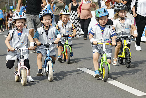 Kinder zwischen zwei und fünf Jahren können sich darüber hinaus beim Laufradrennen (14.30 bis 14.40 Uhr) auf den letzten 100 m der Profistrecke beweisen. Im Ziel erwartet jedes Kind eine Überraschung.