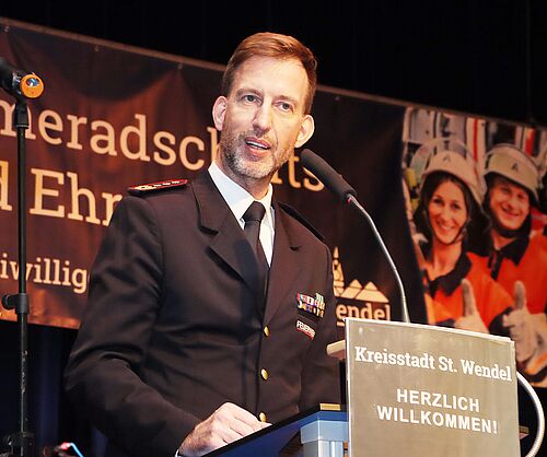 Er verwies auf die rund 430 Einsätze allein in diesem Jahr, „Die erfolgreiche Bewältigung einer solchen Vielzahl der unterschiedlichsten Einsätze zeigt, dass die Arbeit der Hilfskräfte in St. Wendel reibungslos funktioniert“, sagte Klär. Er lobte zudem die erfolgreiche Nachwuchsarbeit der St. Wendeler Löschbezirke. So konnte zum Beispiel die Mitgliederzahl der Bambini-Wehren in den vergangenen Jahren um stolze 20 Prozent gesteigert werden. Klär: „Dies beweist den Erfolg aller Bemühungen der verantwortlichen Personen, die einen unverzichtbaren Baustein zur zukünftigen Erhaltung der Einsatzfähigkeit unserer Feuerwehr darstellen“.