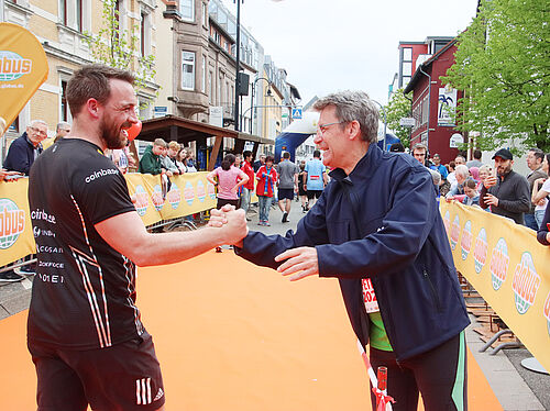 Von Sportlern und Besuchern bestens angenommen wurden die neue Ausstellungsfläche rund ums Thema Laufen auf dem Schloßplatz sowie das große Zelt auf der Mott, in dem unter anderem die Siegerehrungen stattfanden. „Ziel war es, eine Laufveranstaltung mit bestem Service und kurzen Wegen zu bieten und dies durch das nah am Zielbereich gelegene Zelt noch kompakter zu gestalten“, erläuterte St. Wendels Bürgermeister Peter Klär. „Von den Teilnehmern wurde einhellig die besondere Atmosphäre des St. Wendeler Marathons mit den zahlreichen Musikbands, dem tollen Zieleinlauf, den vielen freundlichen Helfern und der hervorragenden Verpflegung an der Strecke und im Zielbereich gelobt. Während der Siegerehrung äußerten viele schon ihre Vorfreude aufs nächste Jahr“, zog Organisationschef und Halbmarathon-Teilnehmer Klär am Ende des Tages zufrieden Bilanz.