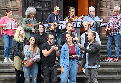 Rund 100 Gäste waren der Einladung des Bürgermeisters und der St. Wendeler Kirchengemeinden gefolgt.  „Lernen wir, miteinander zu leben und nicht gegeneinander. So wollen wir auch hier in St. Wendel gemeinsam für Freiheit, Friede und Zusammenhalt einstehen. Jede zur Versöhnung ausgestreckte Hand ist ein Schritt zum Frieden in der Welt“, sagte Klär. Rund um das ökumenische Friedensgebet gestalteten der Jugendchor der Basilika, die Tanzschule Stage und Schülerinnen und Schüler der Fun Music Scholl das musikalische Programm mit verschiedenen Titeln passend zum Thema des Abends. Den Abschluss bildete das europaweite Glockenläuten für den Frieden.